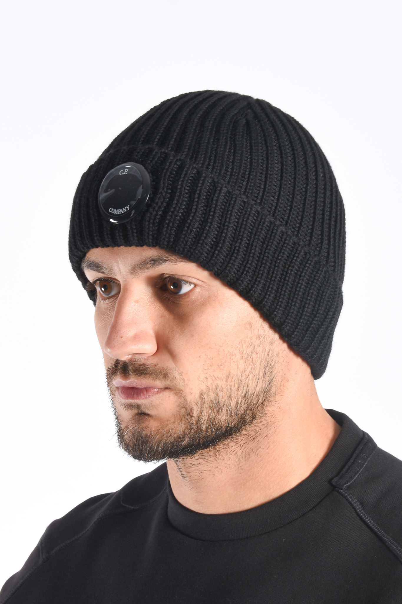 CP Company FW25 - Extrafine Merino Wool Lens Hat - Black